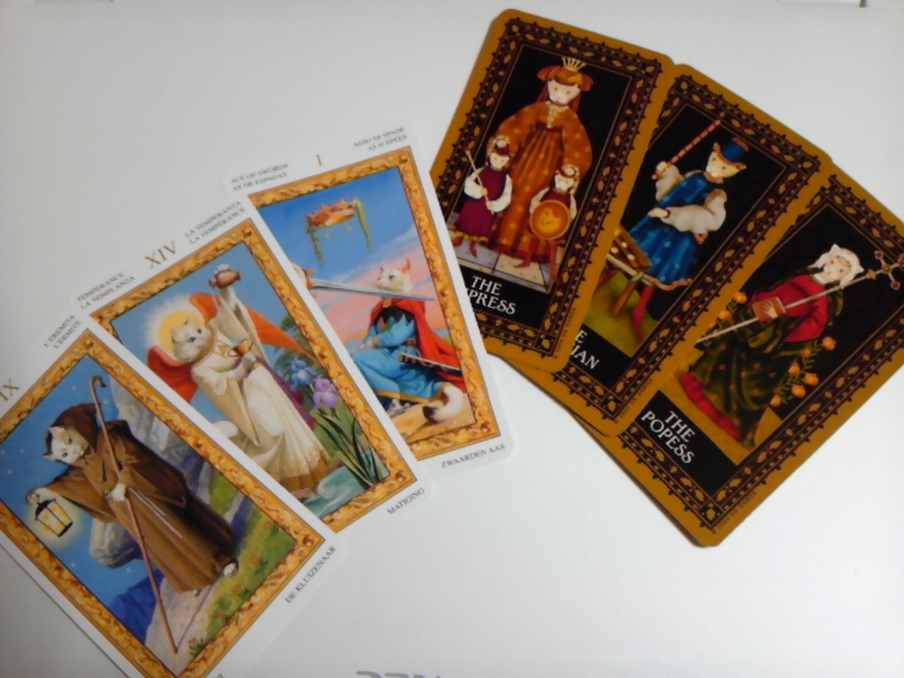 因みに、絵柄の可愛らしさに反比例して? 両デッキとも、ライダー版に基づいた解釈によるイラストが丁寧に描かれており、一枚一枚の意味を覚えていなくても、絵のイメージから十分リーディングが可能、という気がします。